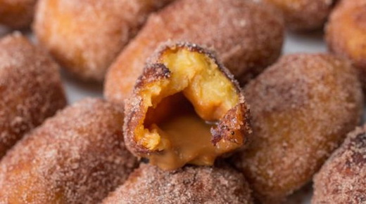 Банановый десерт должен остыть. Разделяем массу на 15-16 частей, а одну часть смешайте с орехами и также разделите на части. Из банановой массы делаем шарик, а начинка для него - орехово-банановая масса. Десерт жарим во фритюре до золотистого цвета. К столу банановый десерт подаём горячим. Для украшения бананового десерта использовать кокосовую стружку.
